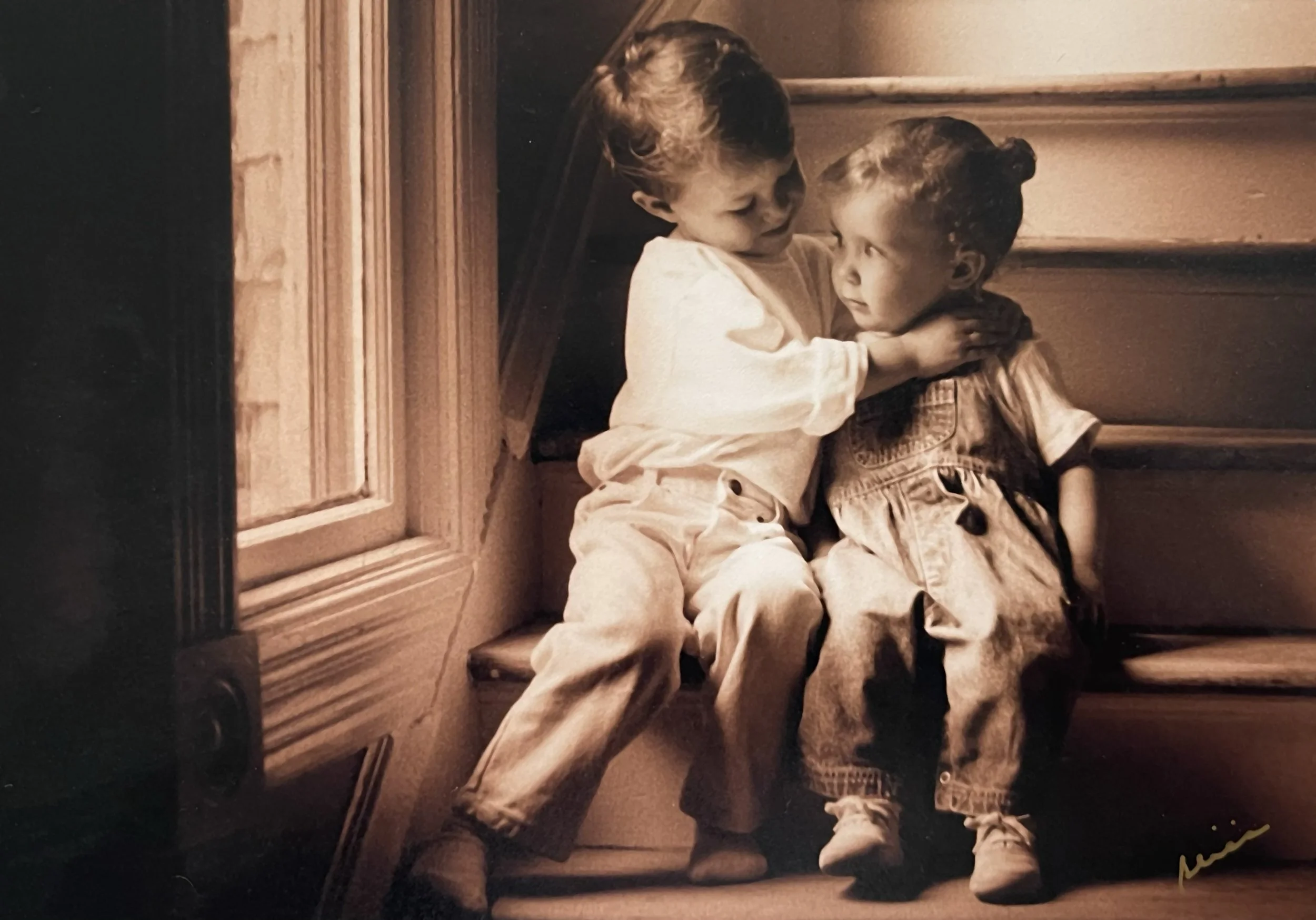 And inside that single frame, two of my children are still sitting there — bathed in soft window light, wrapped in a quiet hug — exactly as they were on that ordinary morning all those years ago.